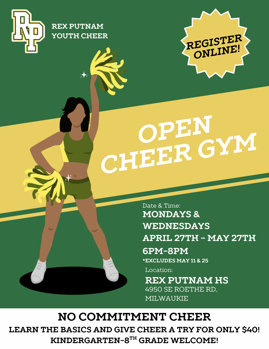 We offer scholarships and payment plans for those who qualify! E-mail our registrar to ask about scholarship options at RexPutnamYouthCheer@gmail.com